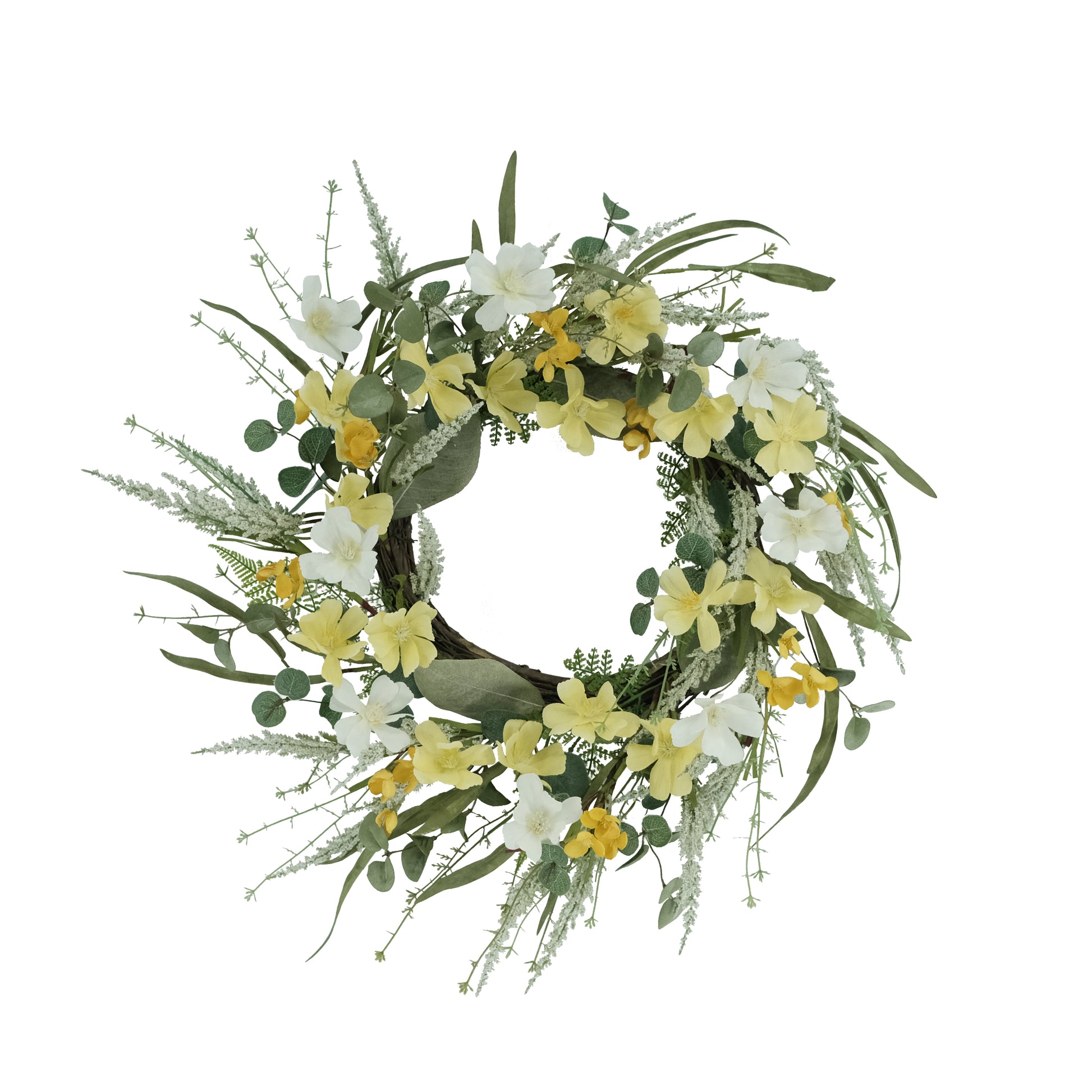Spruce up your home and bring some life to it with the vibrant Puleo International Artificial Dogwood Floral Spring Wreath. The Wreath hangs at a 24” inches diameter perfect for virtually any door, whether indoor or outdoor. Decorate with elegance while adding a touch of color and the feel of nature to your space. The hand-crafted wreath on twig vine base is a hassle-free accessory requires no maintenance for decorative year-round use.