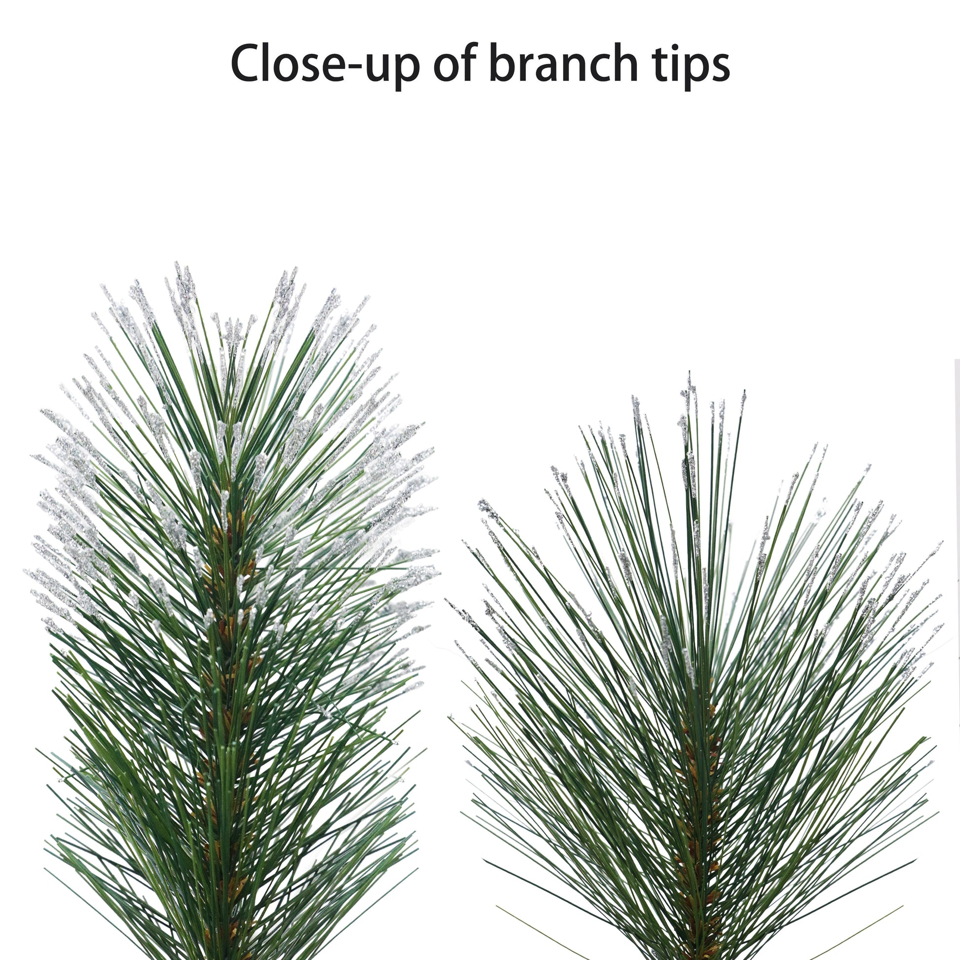 Embrace the joy of the holiday season with the Puleo International Glittery Christmas Wreath. This 24-inch holiday wreath will add a joyful and elegant touch to the inside or outside of your home on the front door, a window, or a fence while welcoming in the Christmas spirit. 50 pre-attached B/O warm white LED lights illuminate its surroundings with a dazzling festive glow, and the timer function conveniently allows you to set a 6 or 18 hour lights-on period. This wreath has 50 gorgeous life-like branch tips with green pine needles. The durable metal ring base offers easy and convenient hanging on any indoor or outdoor location of your choice with a natural look. This product requires three AA batteries (not included).