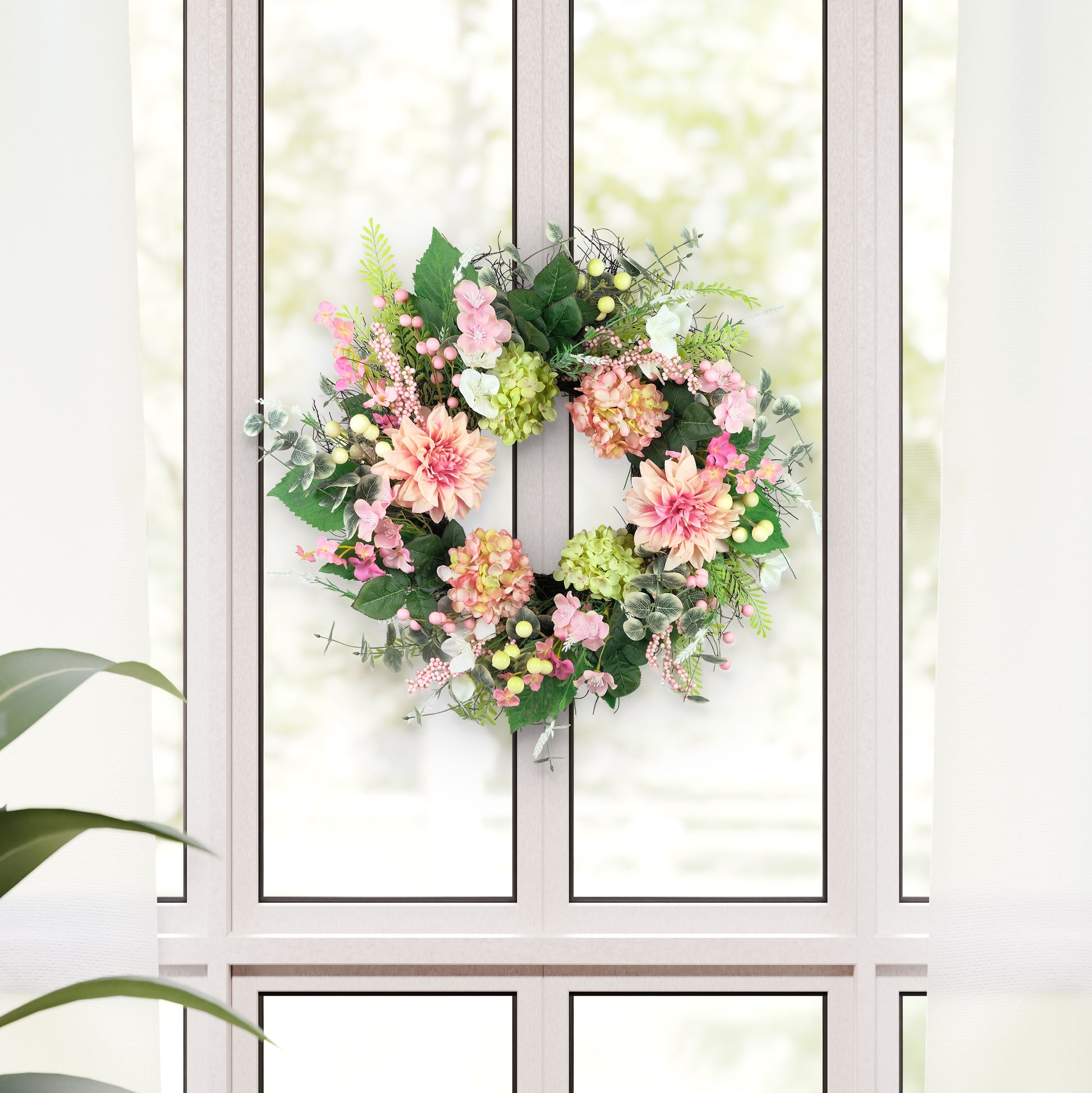 26" Artificial Hydrangea & Dahlia Floral Spring Wreath
