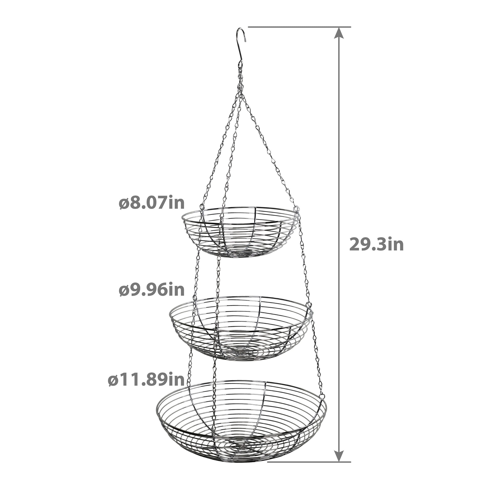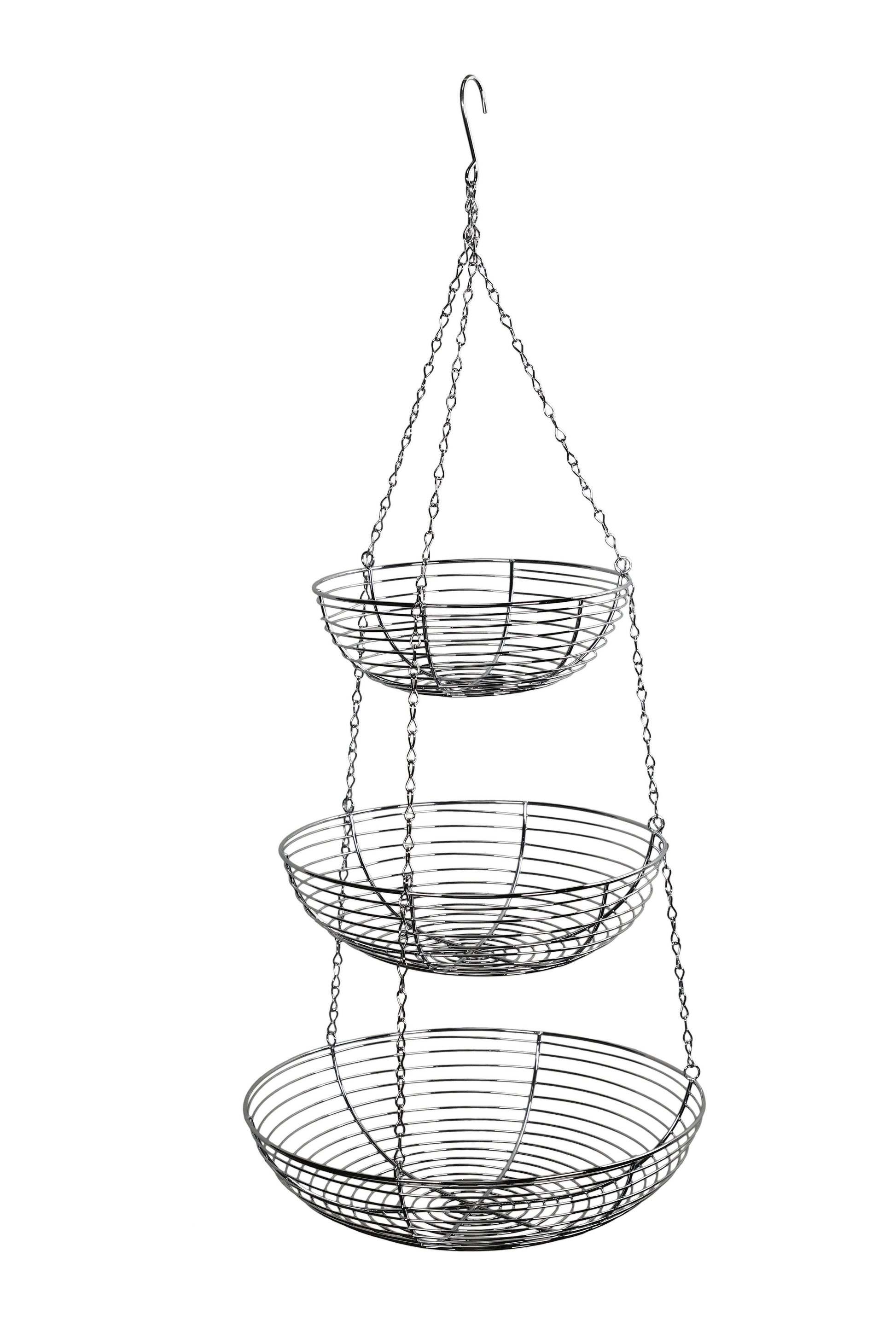 3 Tier Hanging Metal Basket in Silver/Chrome