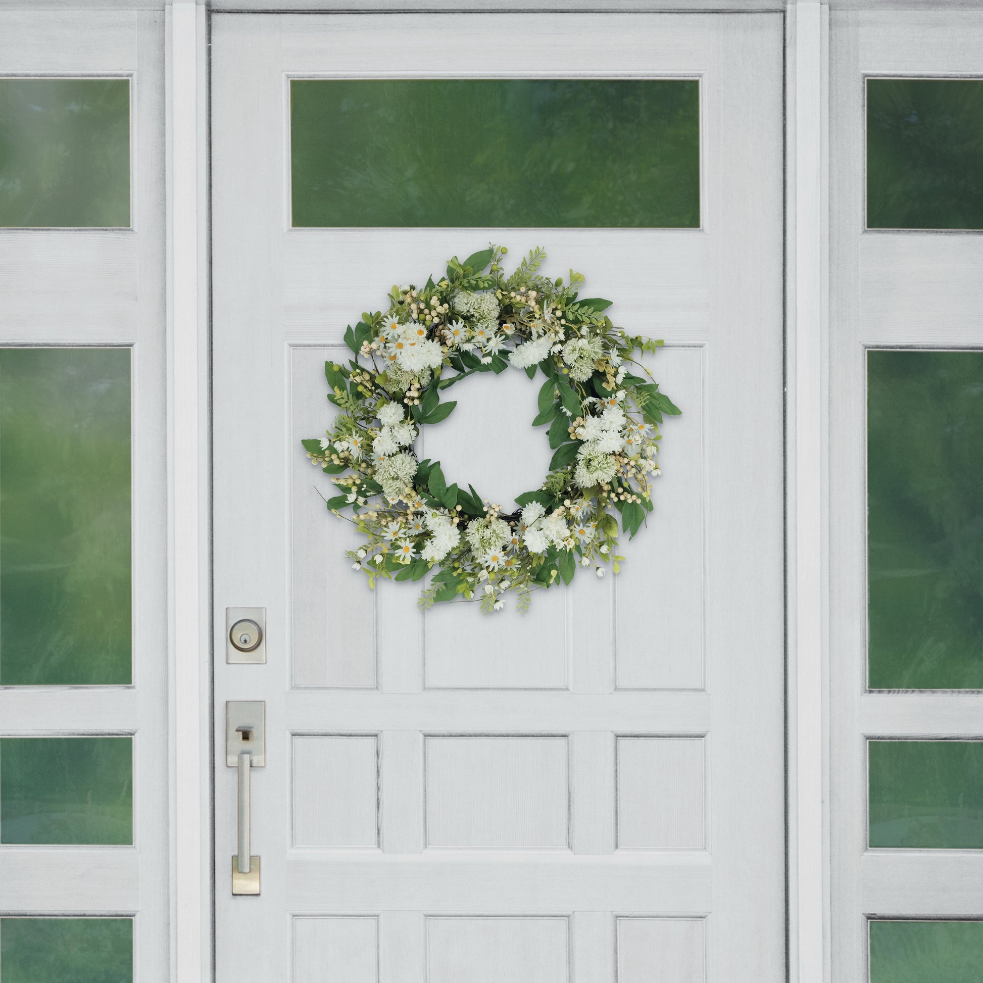 Spruce up your home and bring some life to it with the vibrant Puleo International Chrysanthemum and Daisy Floral Spring Wreath. The Wreath hangs at a 30” inches diameter perfect for virtually any door, whether indoor or outdoor. Decorate with elegance while adding a touch of color and the feel of nature to your space. The hand-crafted wreath on twig vine base is a hassle-free accessory requires no maintenance for decorative year-round use.