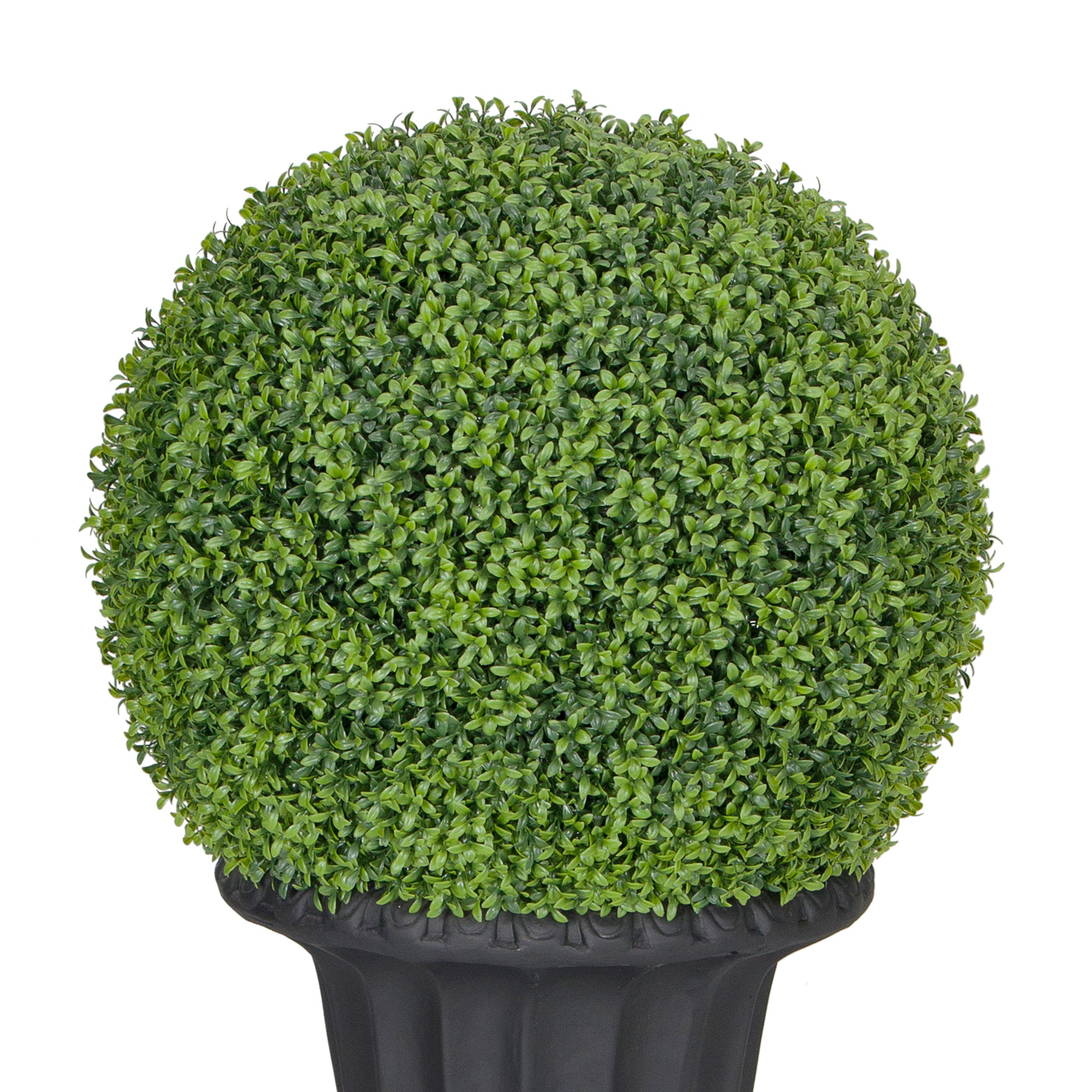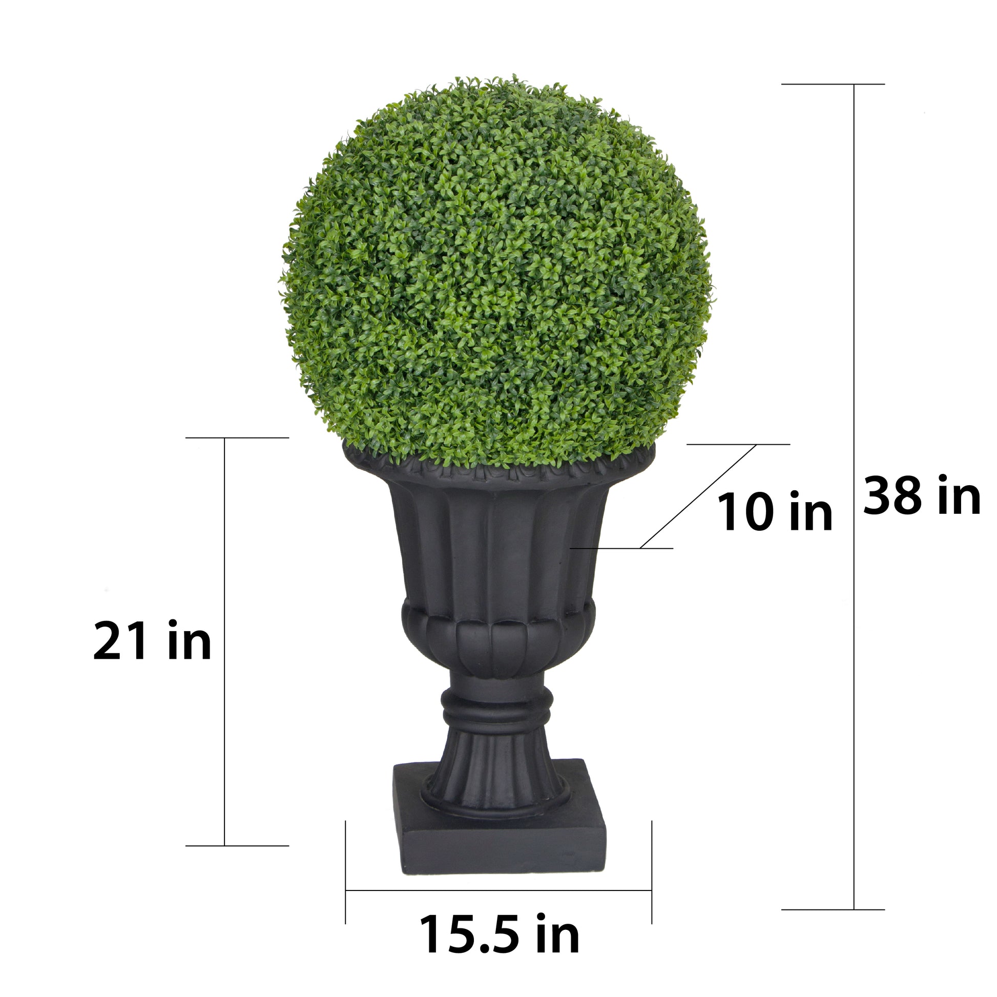 The Puleo International 38” Single Ball Topiary Boxwood Artificial Tree beautifully captures a unique style and elegance that adds an exceptional look to your home, office, or front door. Our boxwood tree is carefully designed with the appearance of a real-life natural presence. Our artificial trees require no watering or pruning, and the unique design and realistic shape will make your home feel relaxed and elegant.