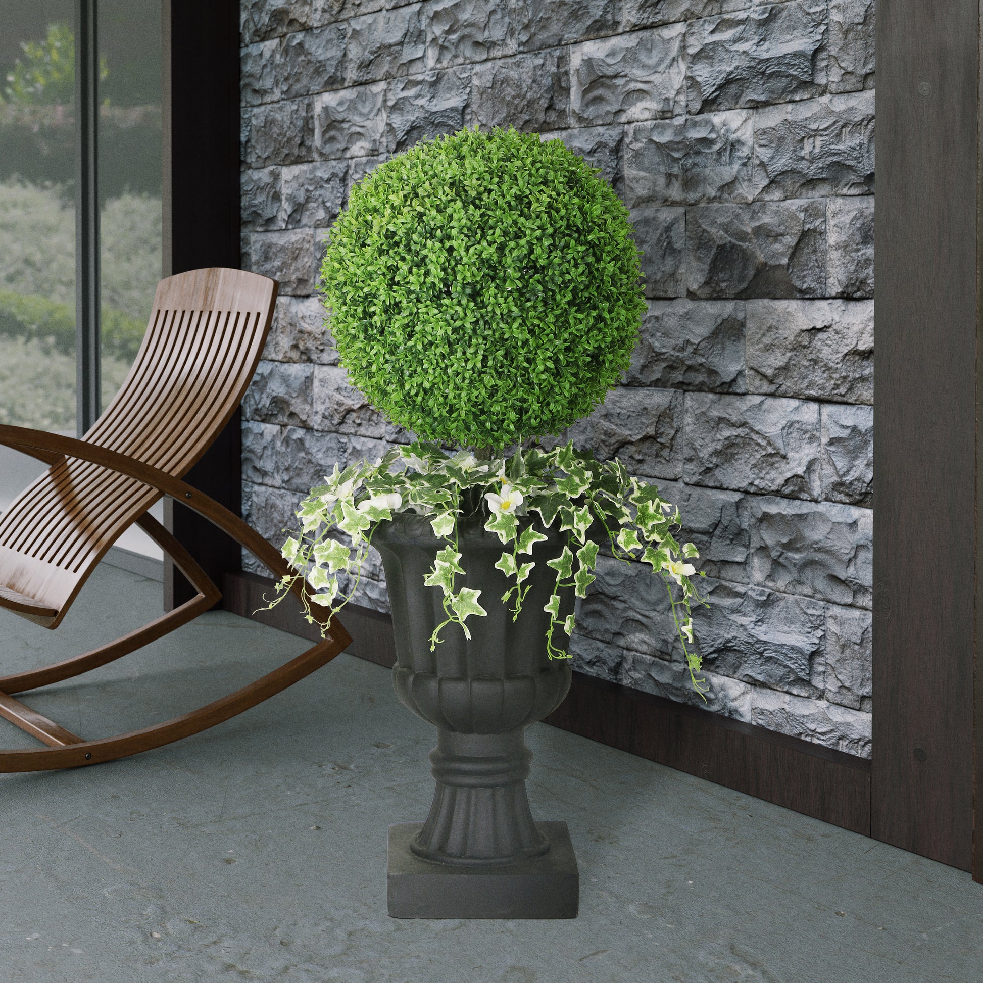 The Puleo International 41” Topiary Boxwood Artificial Tree beautifully captures a unique style and elegance that adds an exceptional look to your home, office, or front door. Our boxwood tree is carefully designed with the appearance of a real-life natural presence. Our artificial trees require no watering or pruning, and the unique design and realistic shape will make your home feel relaxed and elegant.
