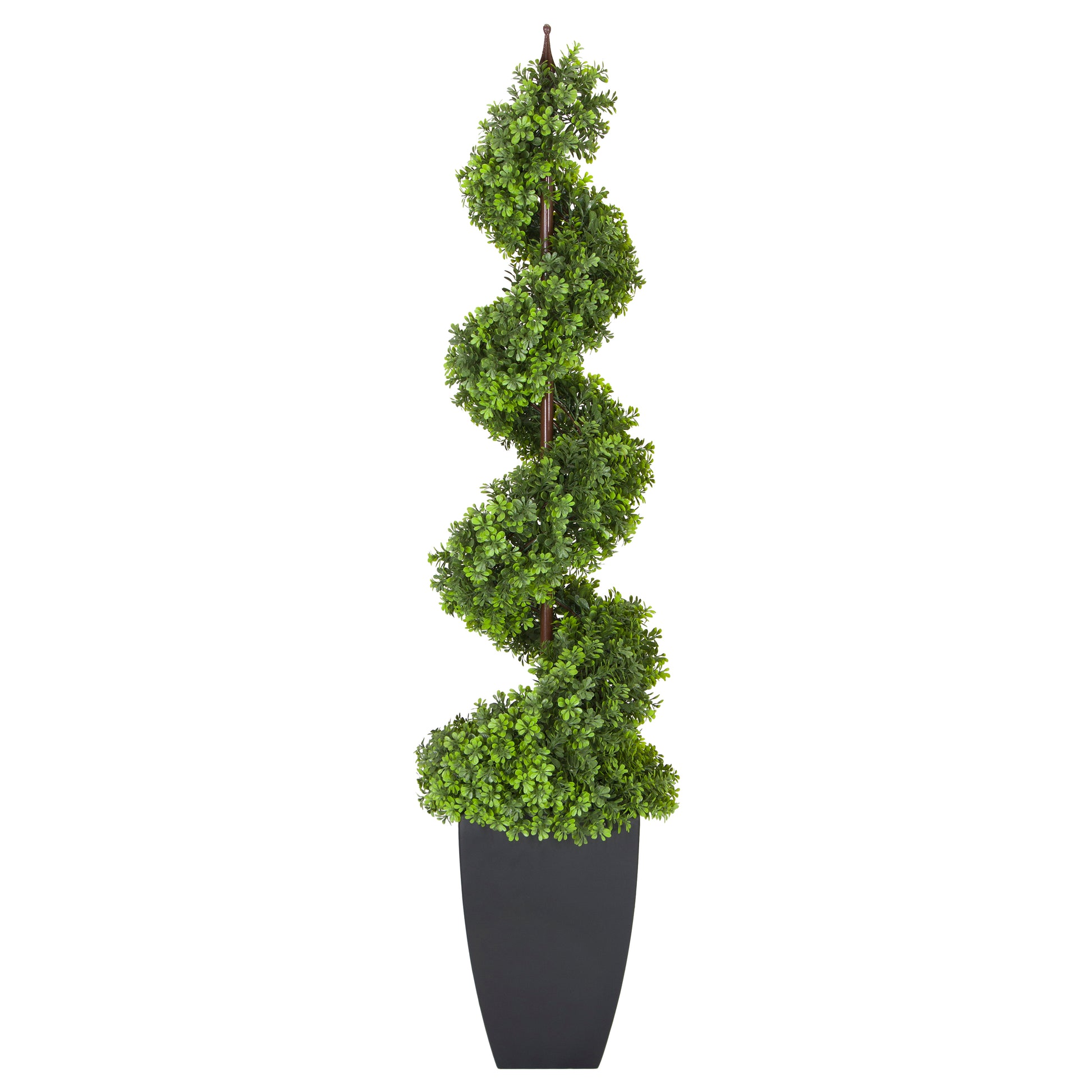 The Puleo International 5 ft. Topiary Spiral Boxwood Artificial Tree beautifully captures a unique style and elegance that adds an exceptional look to your home, office, or front door. Our spiral boxwood tree is carefully designed with the appearance of a real-life natural presence. The slim profile makes for a better fit for limited or smaller spaces
