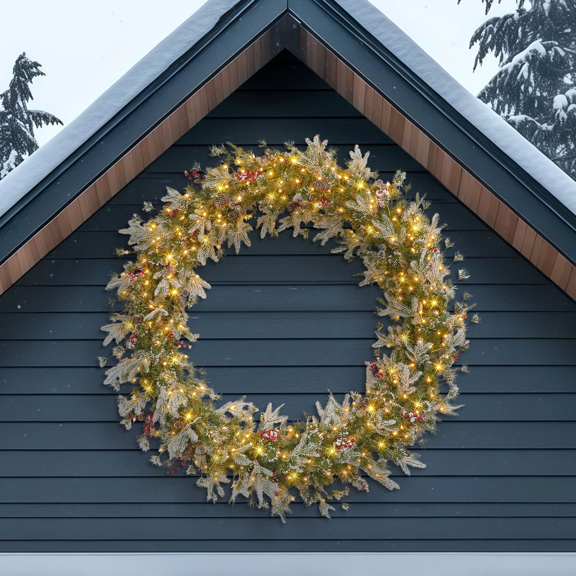 60 in Pre-Lit Glittery PE/PVC Wreath, 700 Tips, Pine Cones, Berries, 300 UL Clear Lights